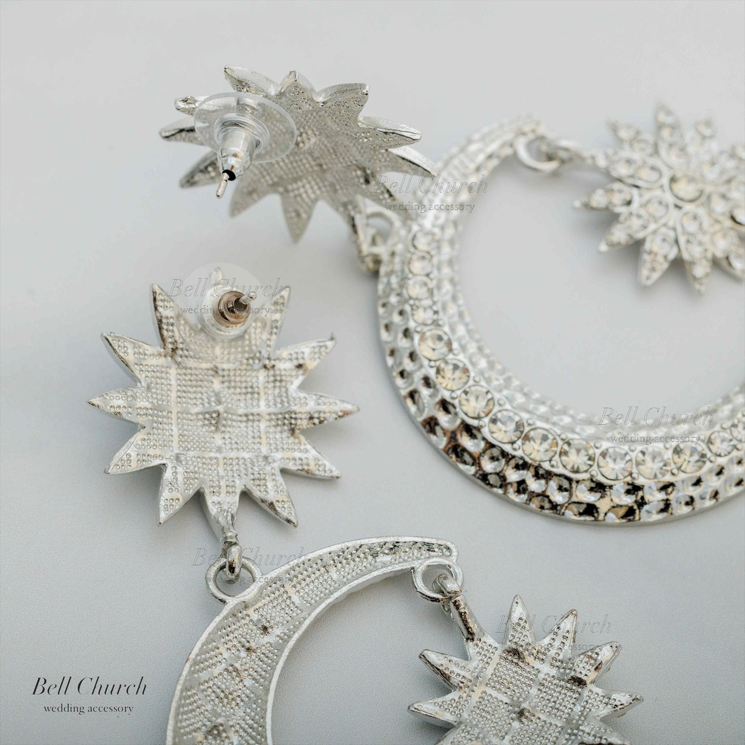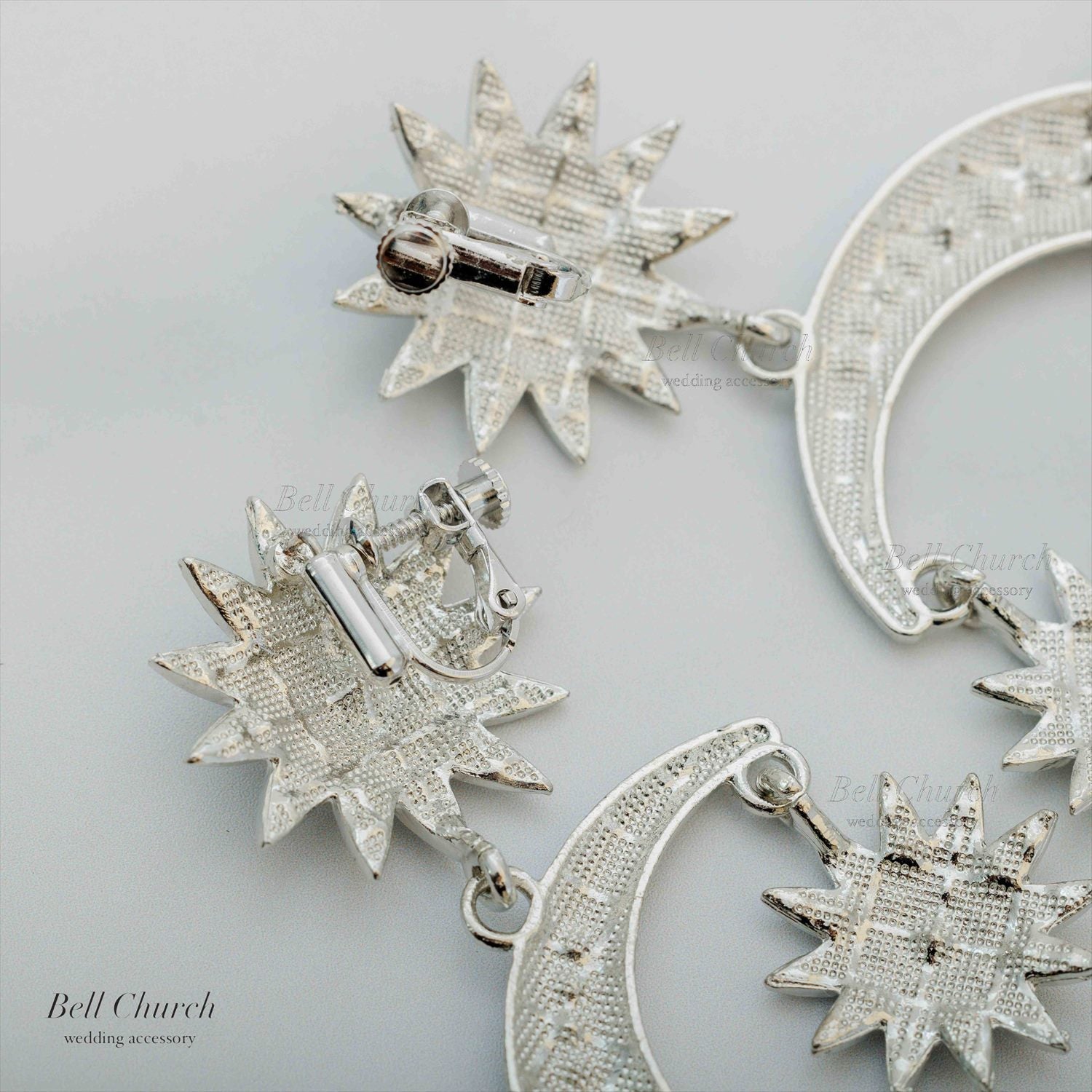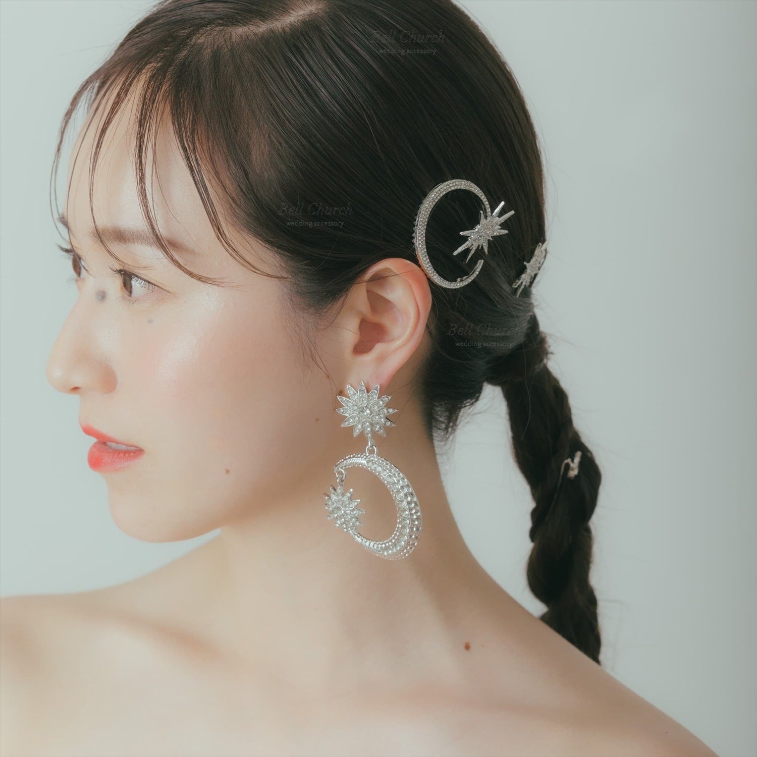ピアス イヤリング | ジルコニア | 星&月モチーフ | シルバー | (BC-E67)【結婚式 アクセサリー ピアス イヤリング】