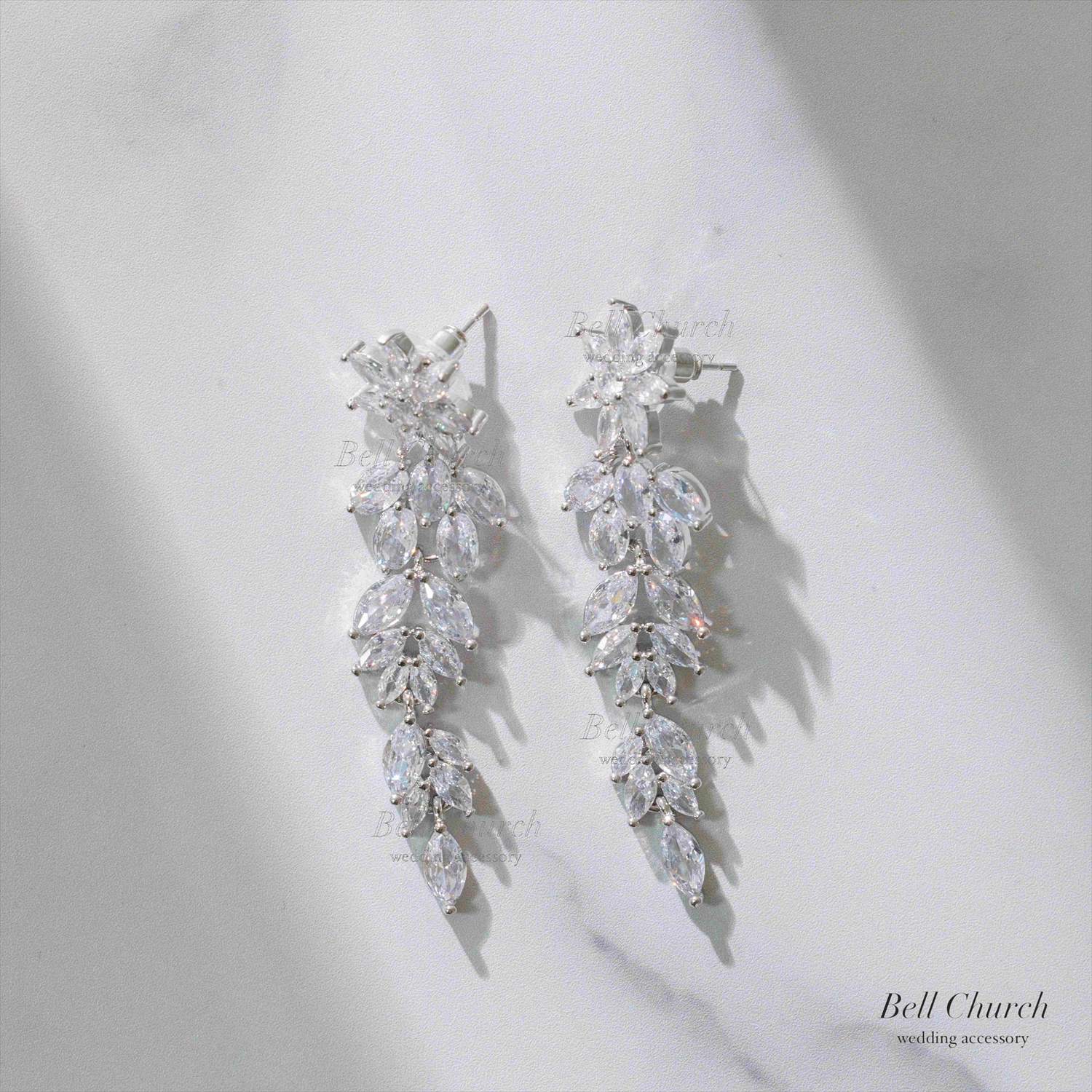 存在感のある輝きとともにお顔まわりで揺れる様は、花嫁様の幸せそうな笑顔を上品に引き立ててくれます。
