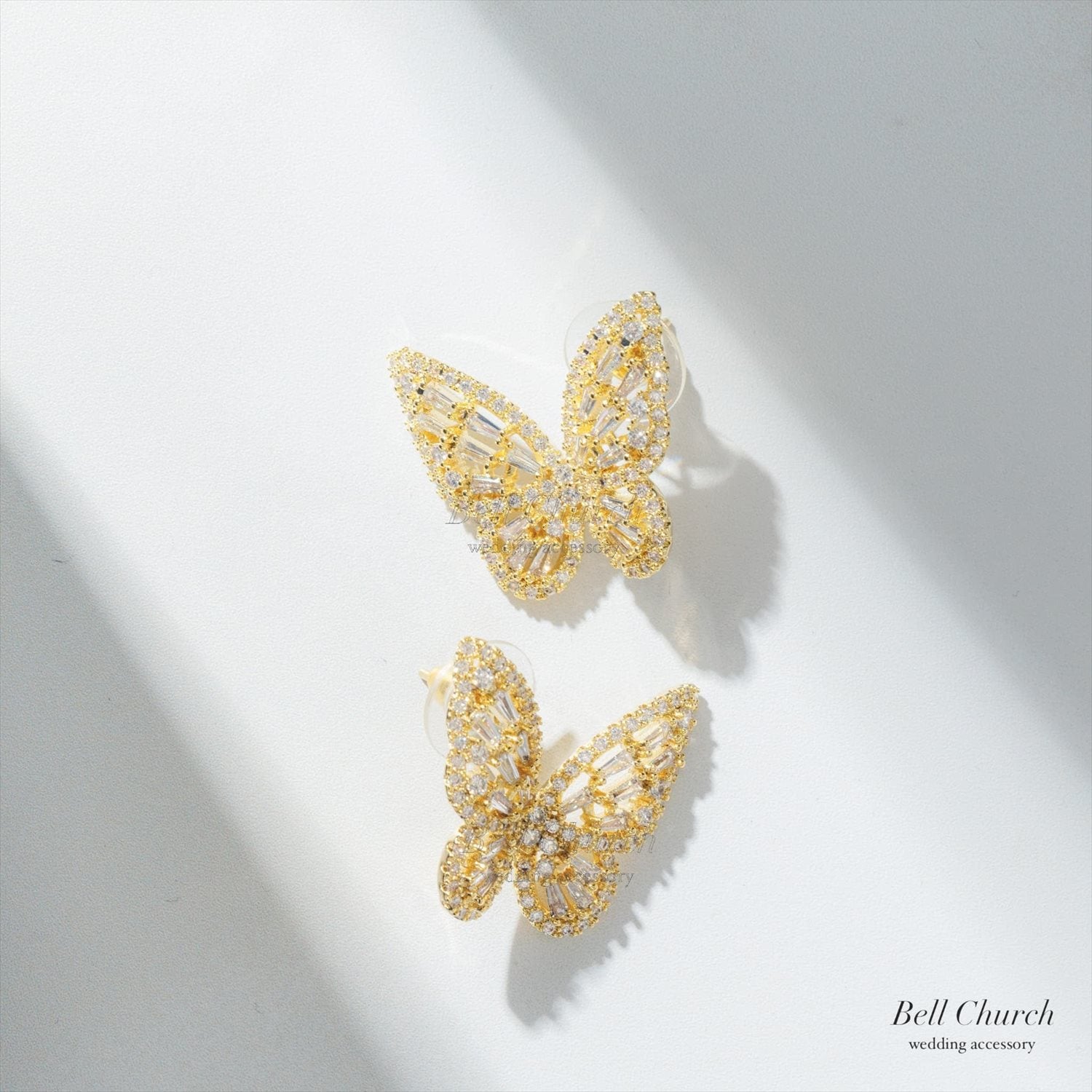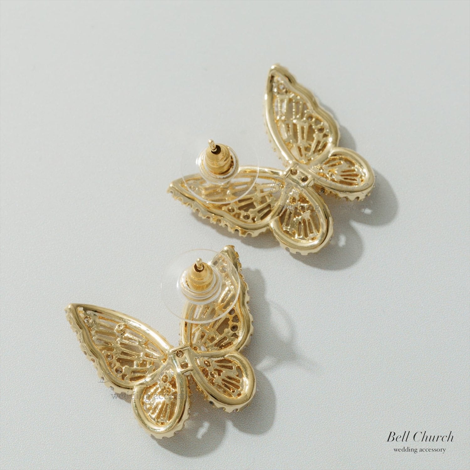 ピアス イヤリング | ジルコニア | 蝶モチーフ | ゴールド | (BC-E76)【結婚式 アクセサリー ピアス イヤリング】