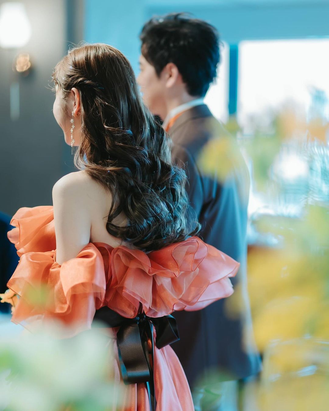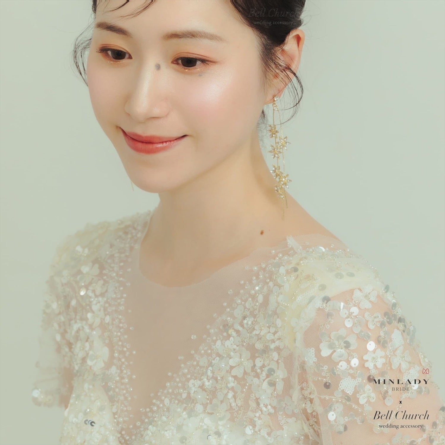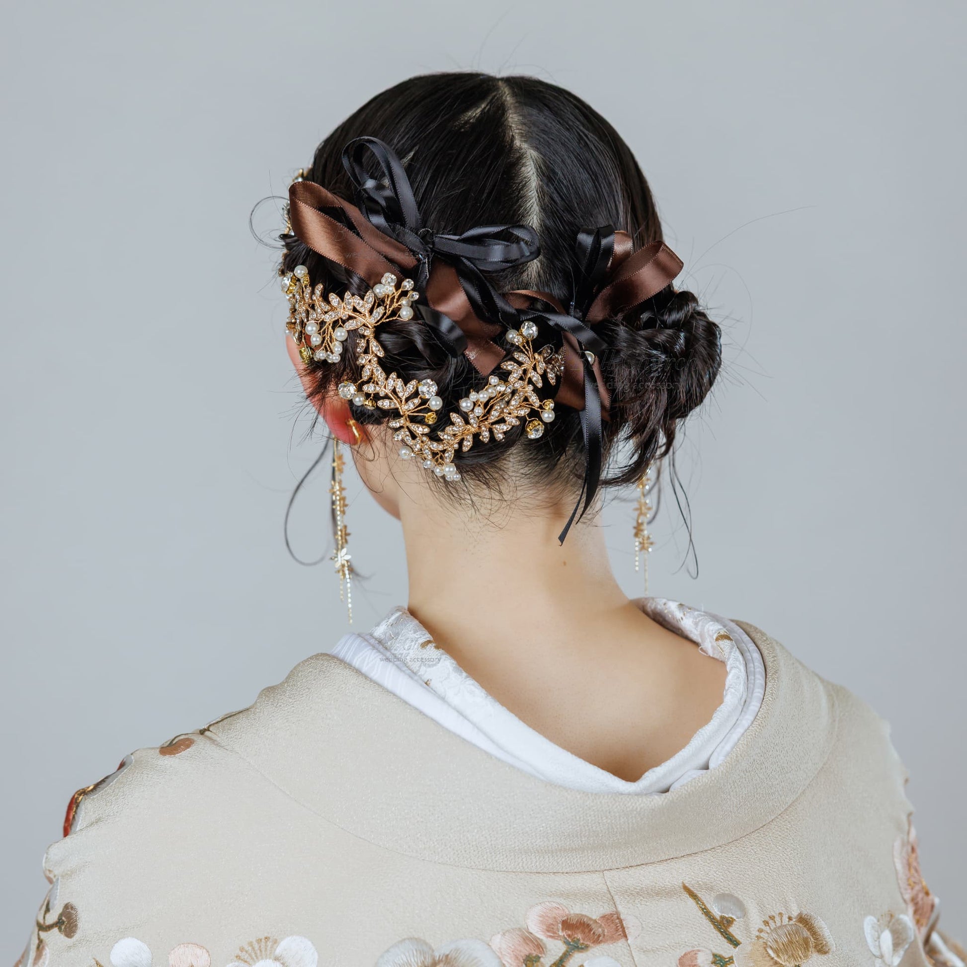 シニヨンやアップスタイルですっきりとまとめると、より可憐さが引き立ち、 ハーフアップやダウンスタイルでは、ふんわり優しく柔らかな印象に。