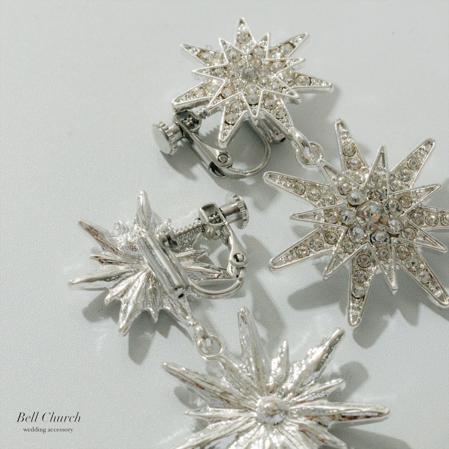 ピアス イヤリング | ジルコニア | 星モチーフ | シルバー | (BC-E80)【結婚式 アクセサリー ピアス イヤリング】