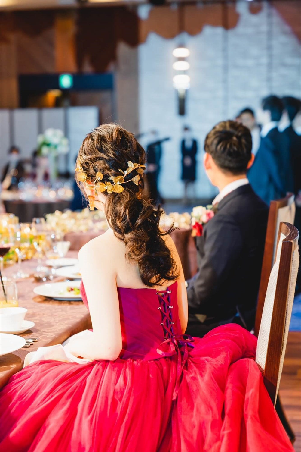カチューシャの様に頭の形に沿わせて自由に付けられ、お花モチーフの大きさも存在感があり華やかなのでとても写真映えします。