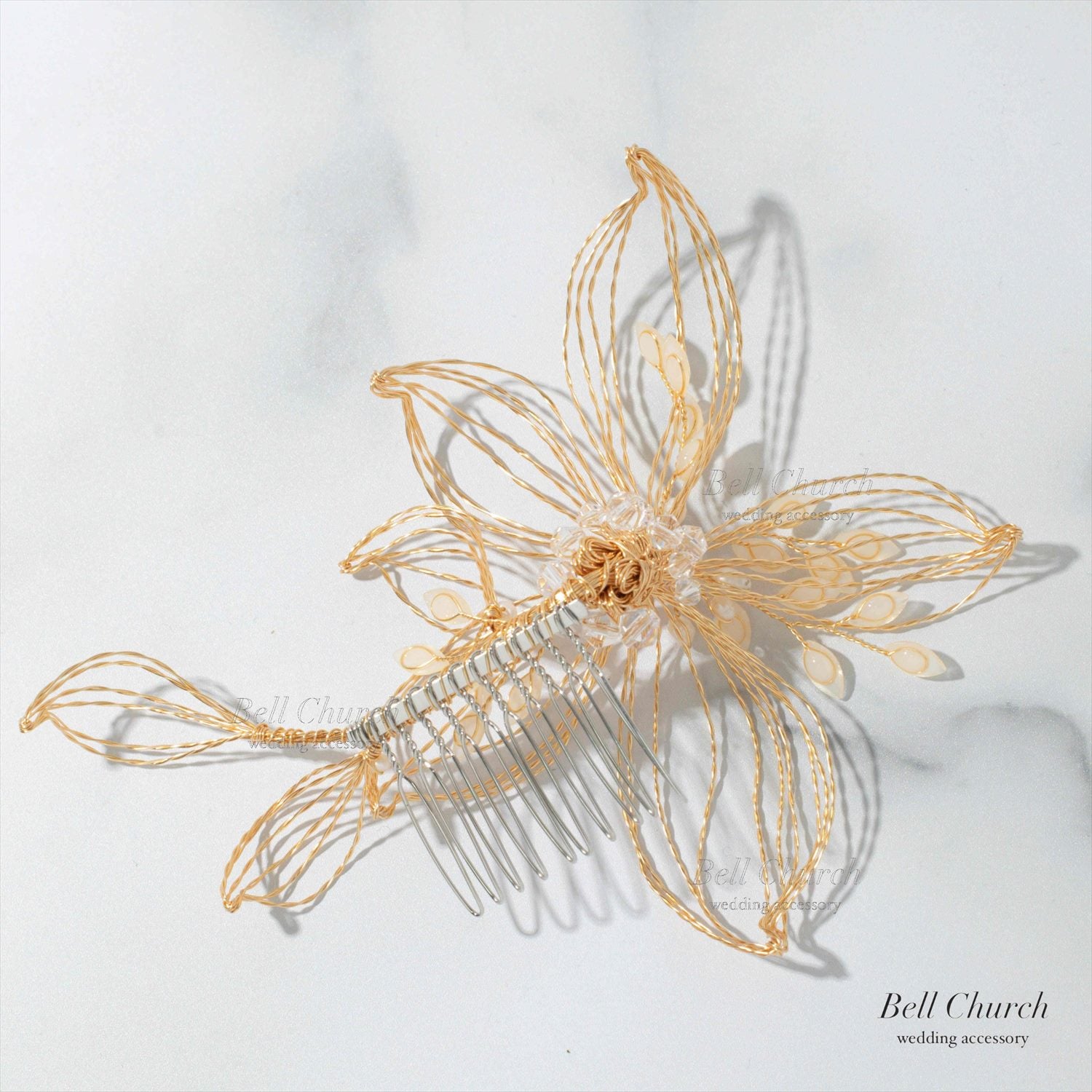 ゴールドワイヤーでかたどられたお花が印象的なヘアコーム。