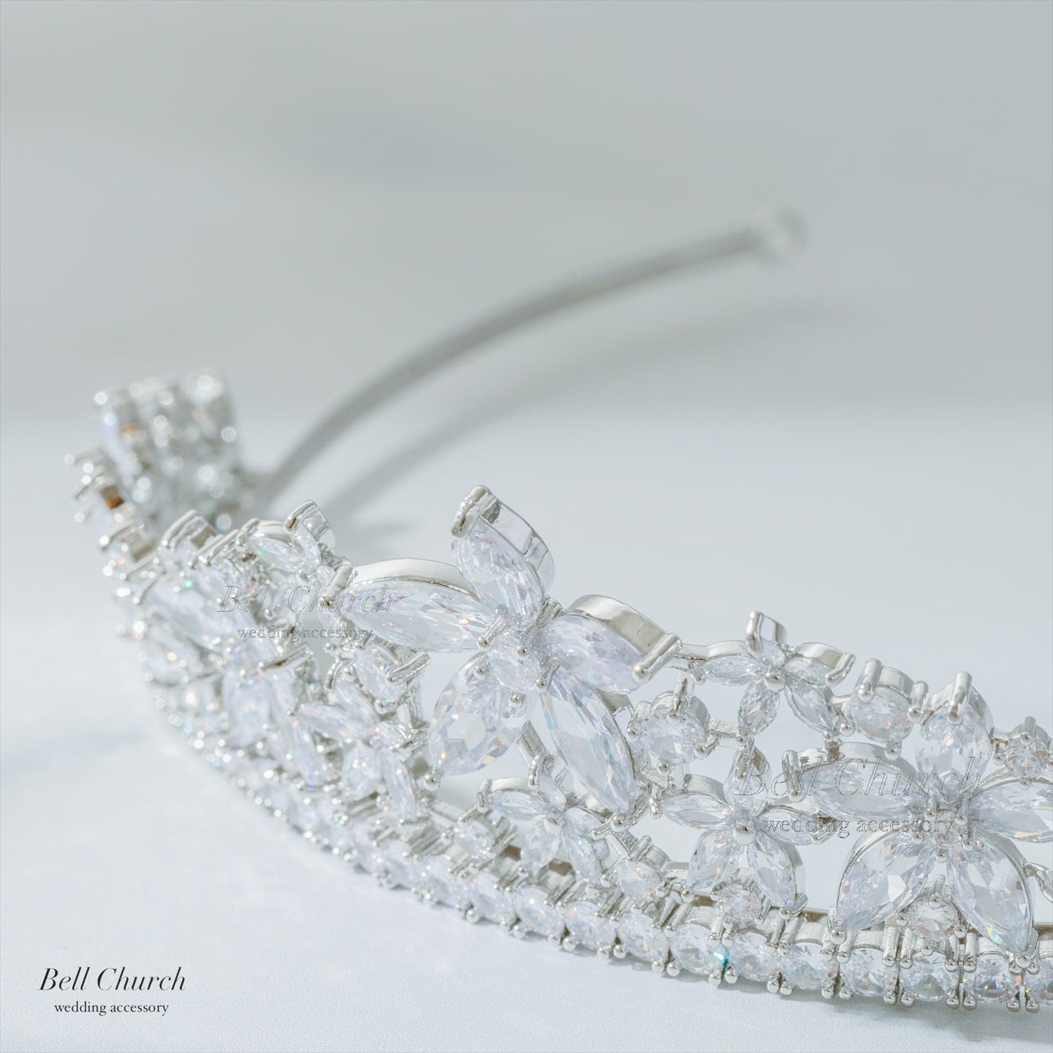 ティアラ | キュービックジルコニア | フラワーモチーフ | シルバー | (BC-T16)【結婚式 アクセサリー ティアラ ヘッドドレス ヘアアクセサリー】