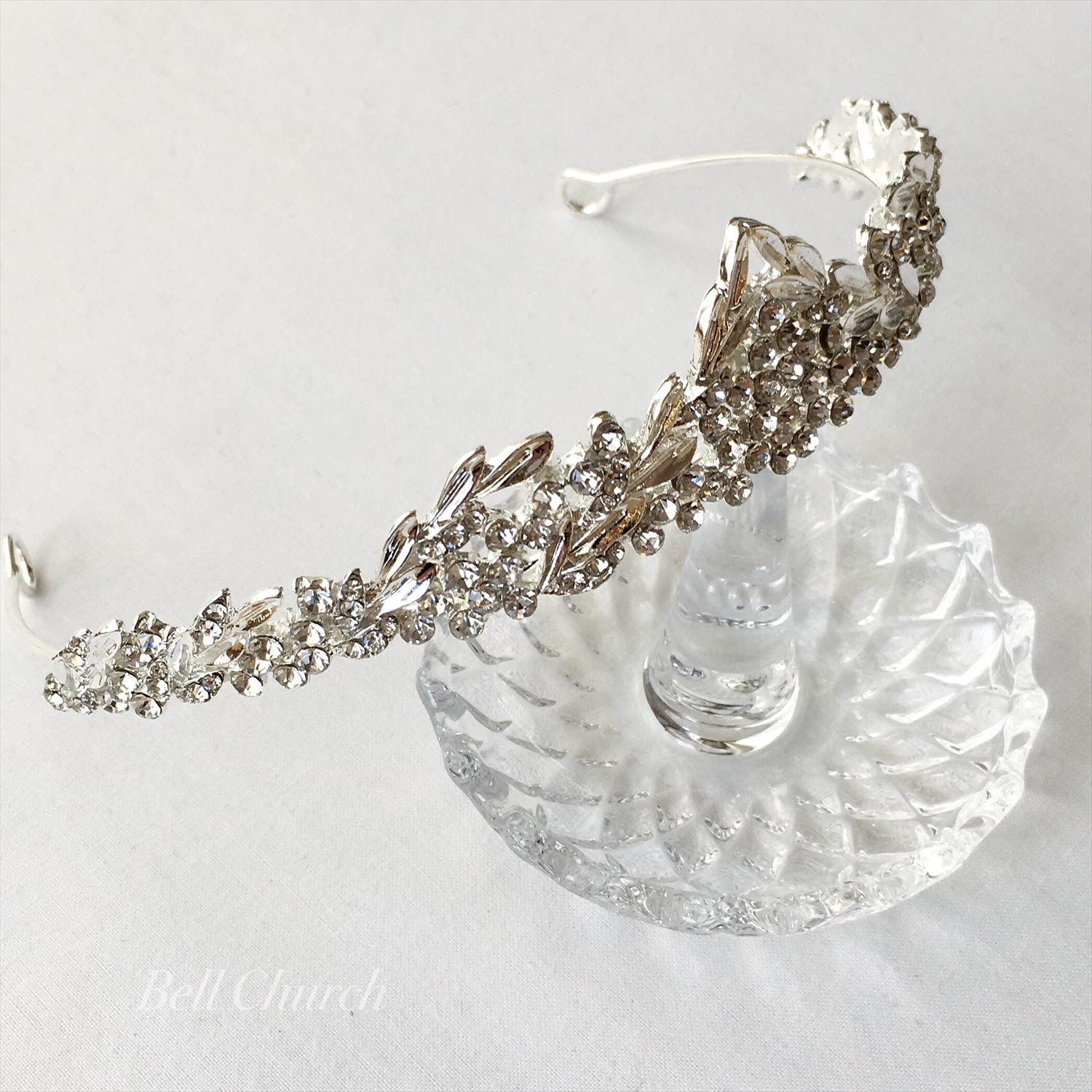 上品なリーフモチーフが連なるハイクオリティなデザインのブライダルティアラです。