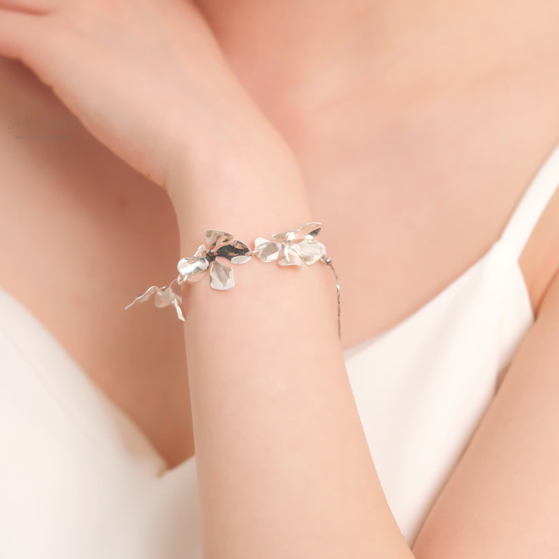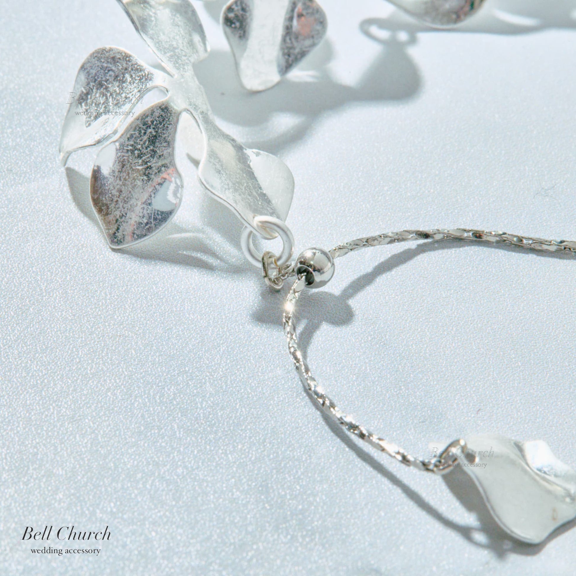ウェディング ブレスレット|ニッケルフリー フラワー リーフ メタル チェーンブレスレット レディース アジャスター ニュアンス 金属アレルギー|シルバー (BC-W5)【結婚式 アクセサリー ブレスレット】