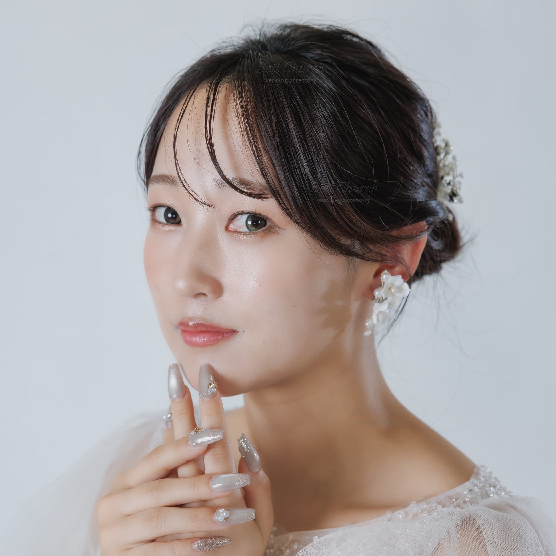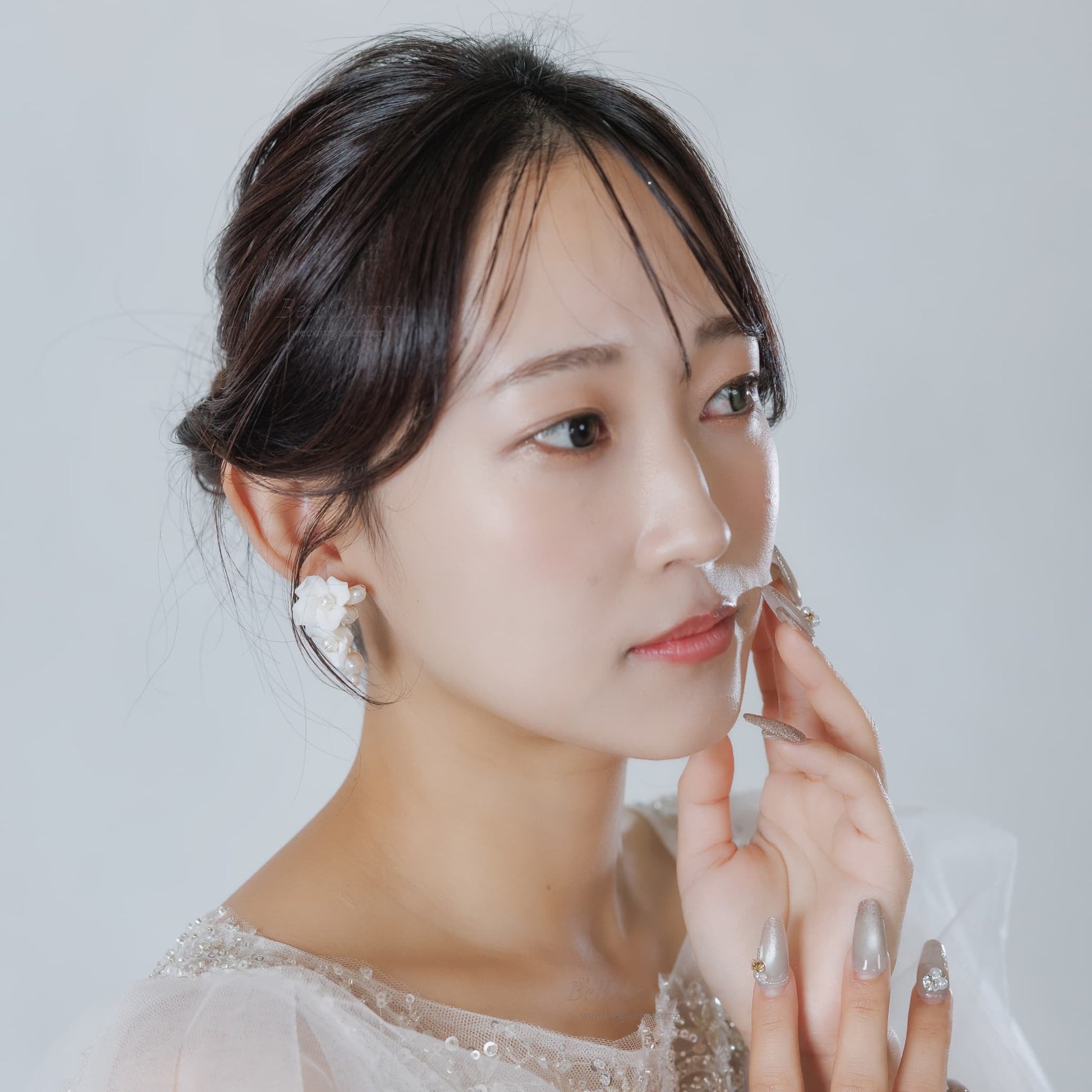 ふわりと揺れるお花が、柔らかく優雅な印象を与え、お顔まわりの魅力を引き出します。
