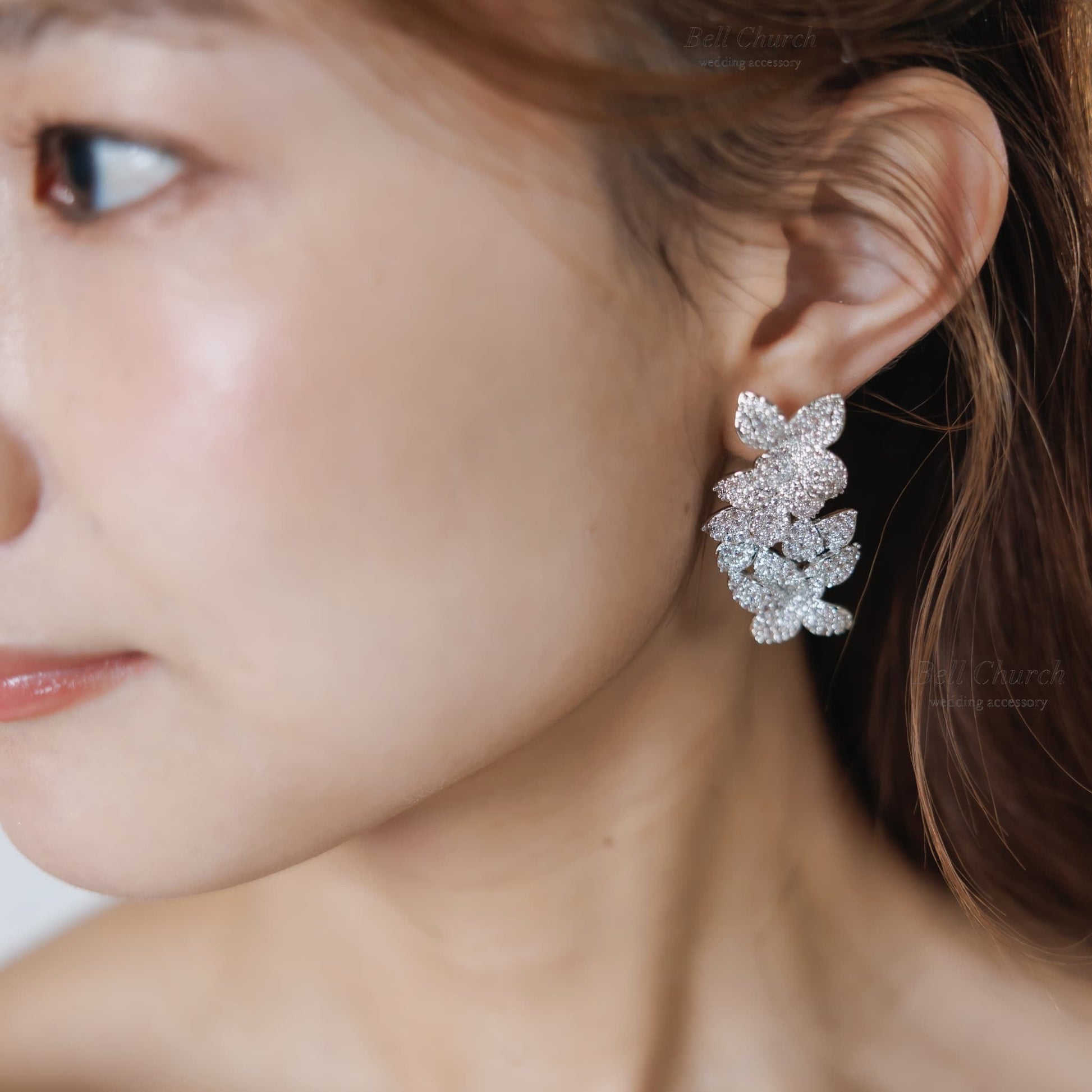 ブライダルピアス イヤリング|ジルコニア|フラワー お花モチーフ|シルバー(BC-E114)【結婚式 アクセサリー ピアス イヤリング】