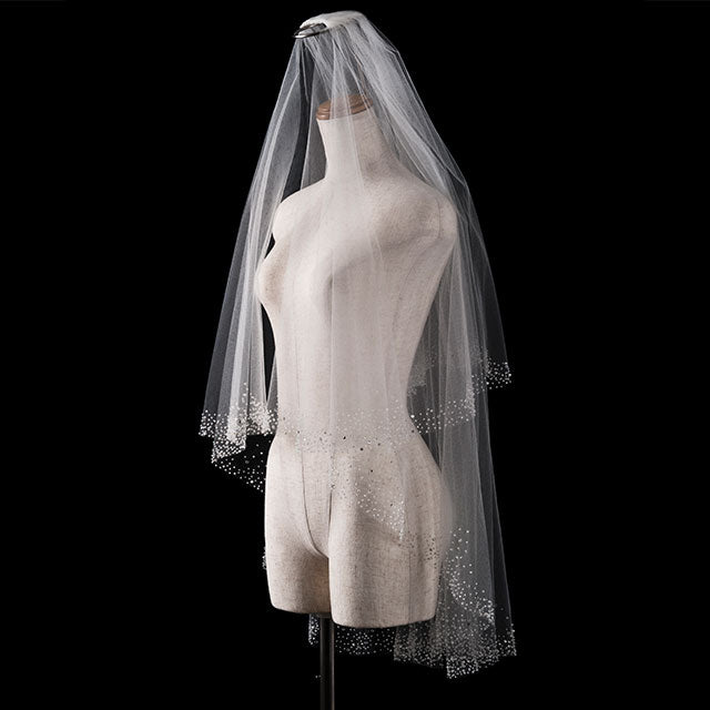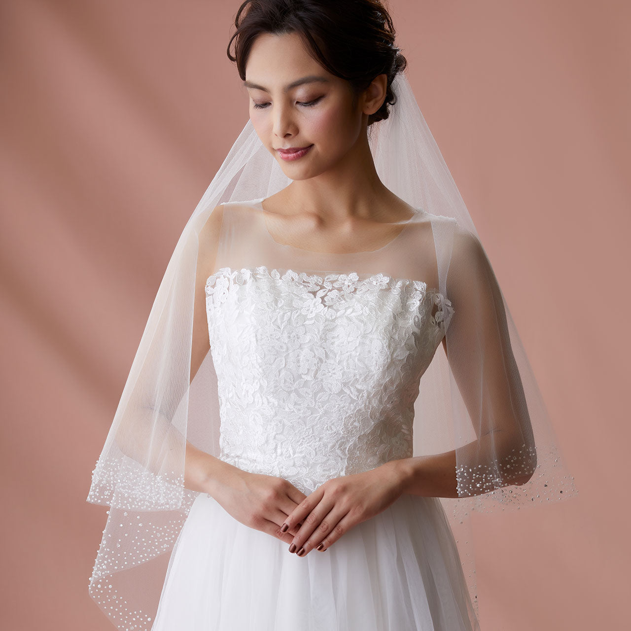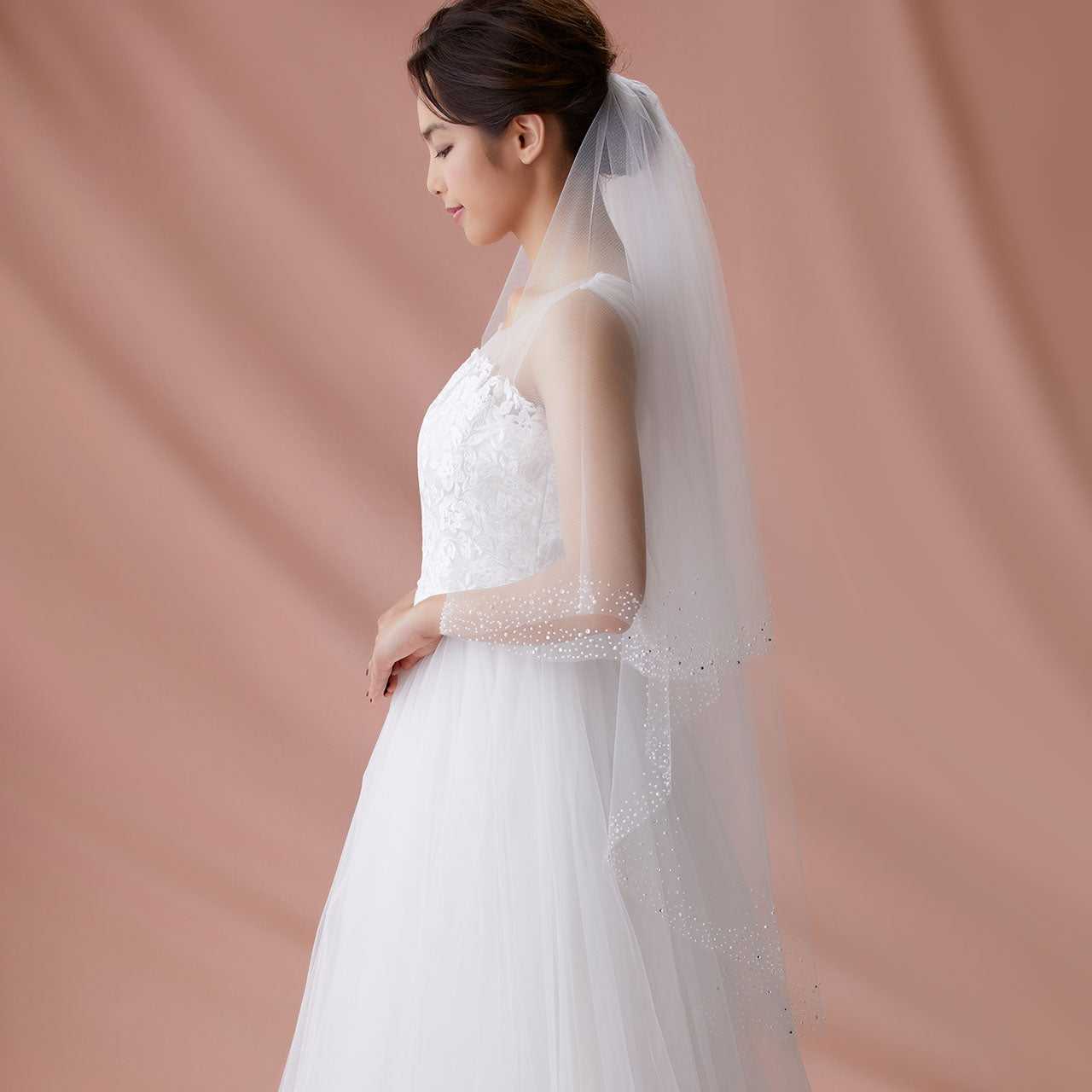 美しさを引き立てる特別なブライダルアクセサリー、【ウエディングベール】V3034-1(Sサイズ0.6+1M)の登場です!この華やかなウエディングベールは、クリスタルの輝きが美しく、特別な日の装いにぴったりな一品です。華やかさと上品さを兼ね備え、あなたの特別な瞬間を一層引き立てます。