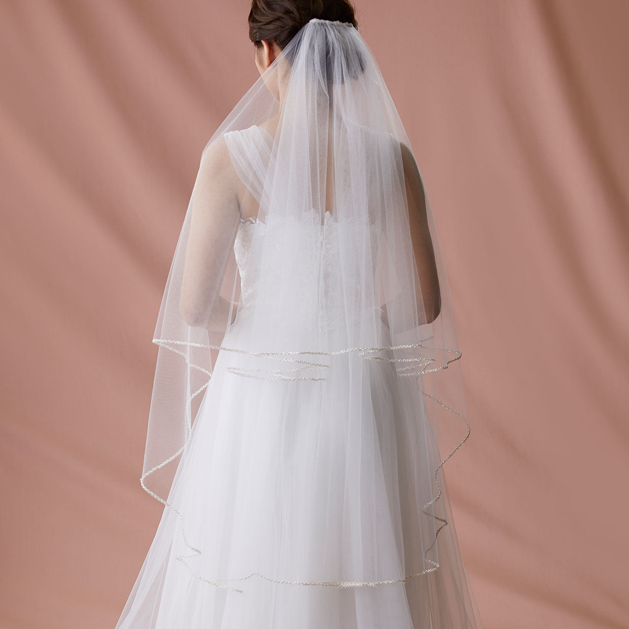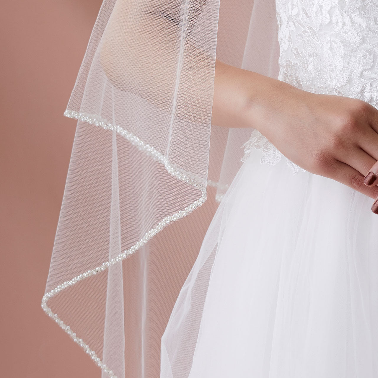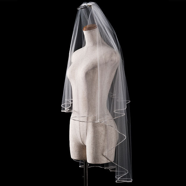 美しさを引き立てる特別なブライダルアクセサリー、【ウエディングベール】V3057-1(Lサイズ0.6+3M)の登場です!このシンプルなウエディングベールは、パールと刺繍が施され、特別な日の装いにぴったりのアイテムです。シンプルながらも優雅なデザインが、あなたの特別な瞬間をより一層美しく演出します。
