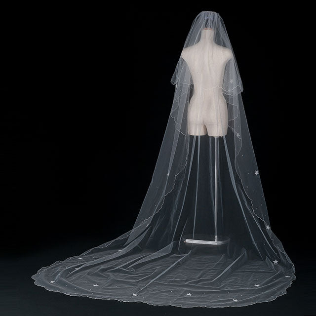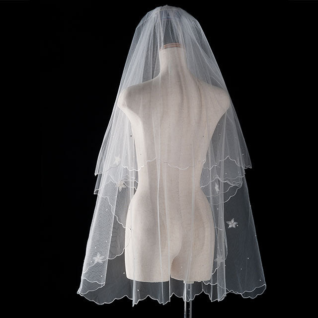 美しさを引き立てる特別なブライダルアクセサリー、【ウエディングベール】V3058-1(Sサイズ0.6+1M)の登場です!このシンプルなウエディングベールは、パールと刺繍が施され、特別な日の装いにぴったりのアイテムです。シンプルながらも優雅なデザインが、あなたの特別な瞬間をより一層美しく演出します。