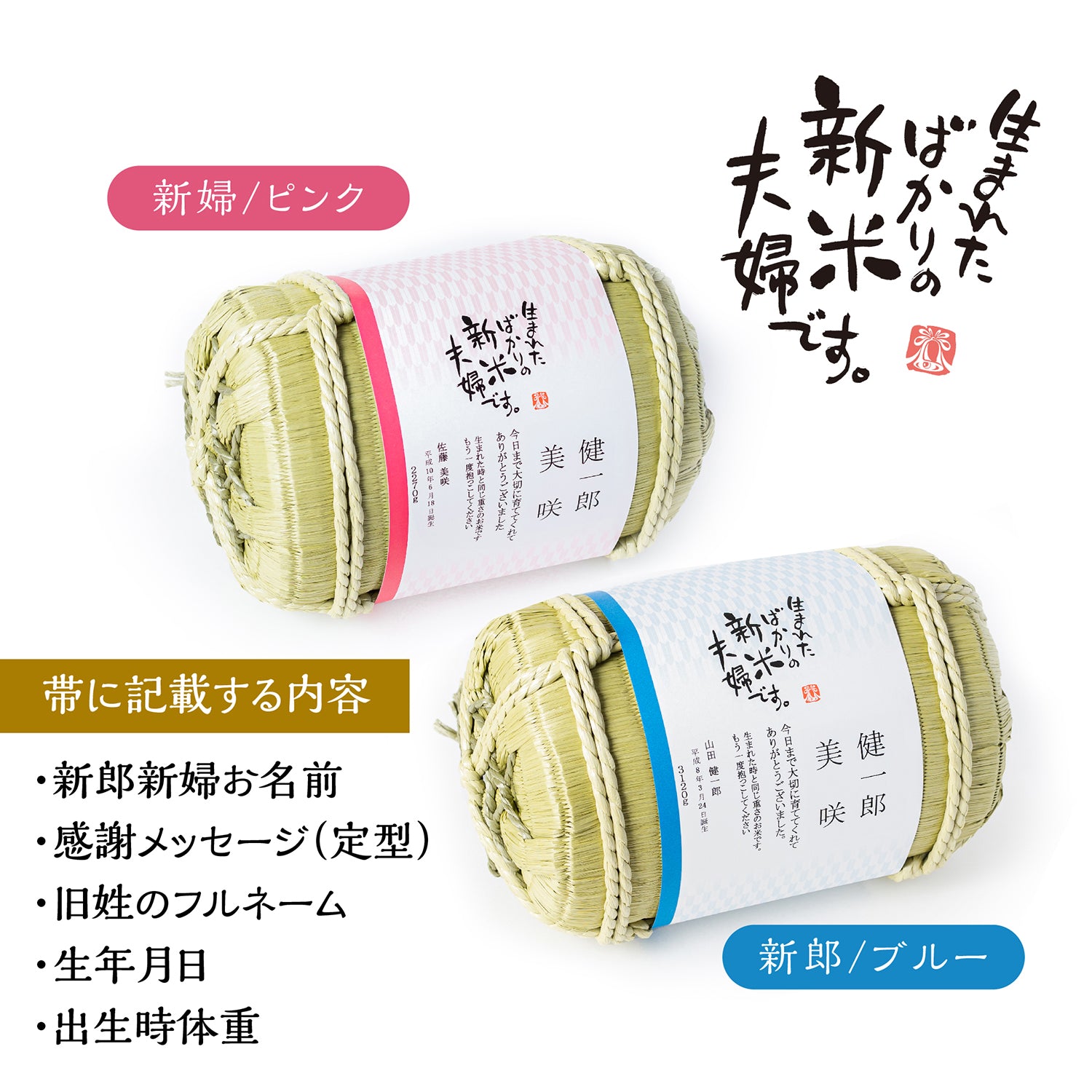 【生まれたばかりの新米夫婦です】新郎新婦のお名前入り俵形体重米で両親贈呈に【文字タイプ2個セット】