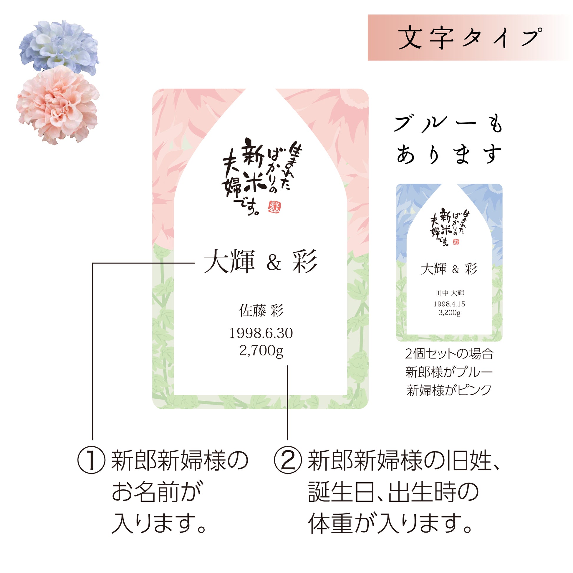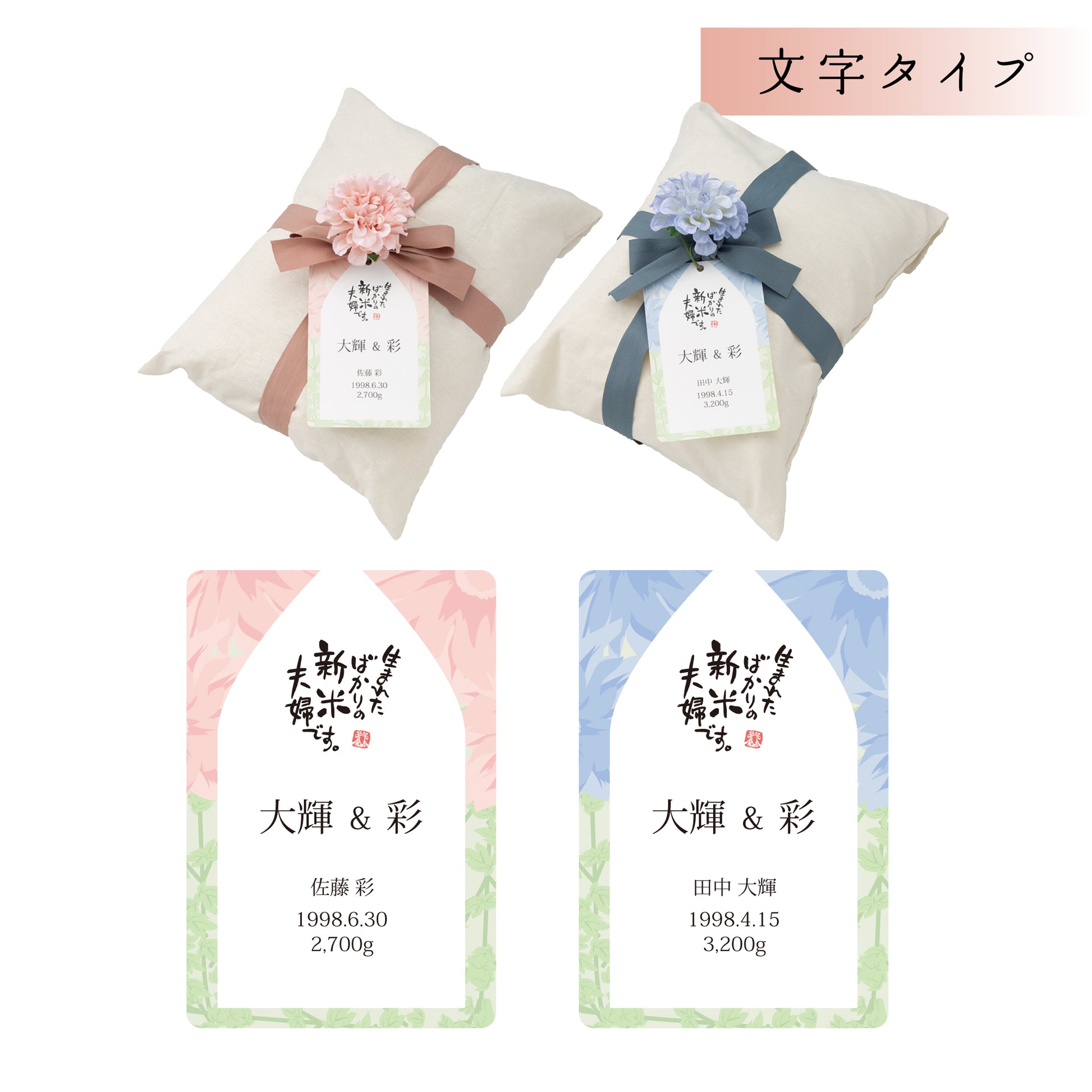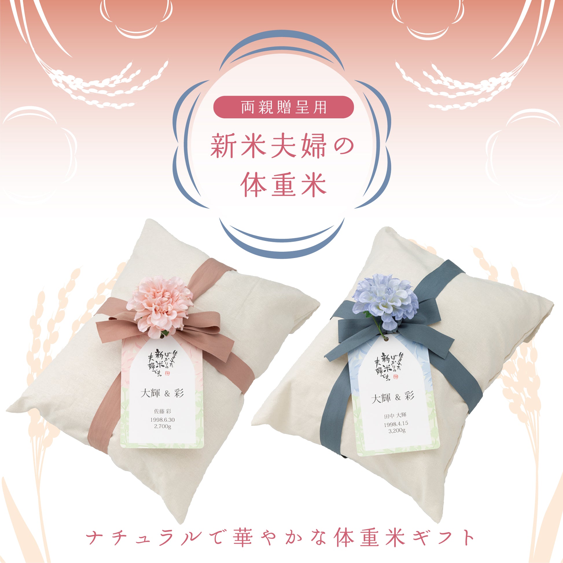 【新米夫婦の体重米】新郎新婦のお名前入りの札をつけた華やかな袋入り体重米【文字タイプ2個セット】