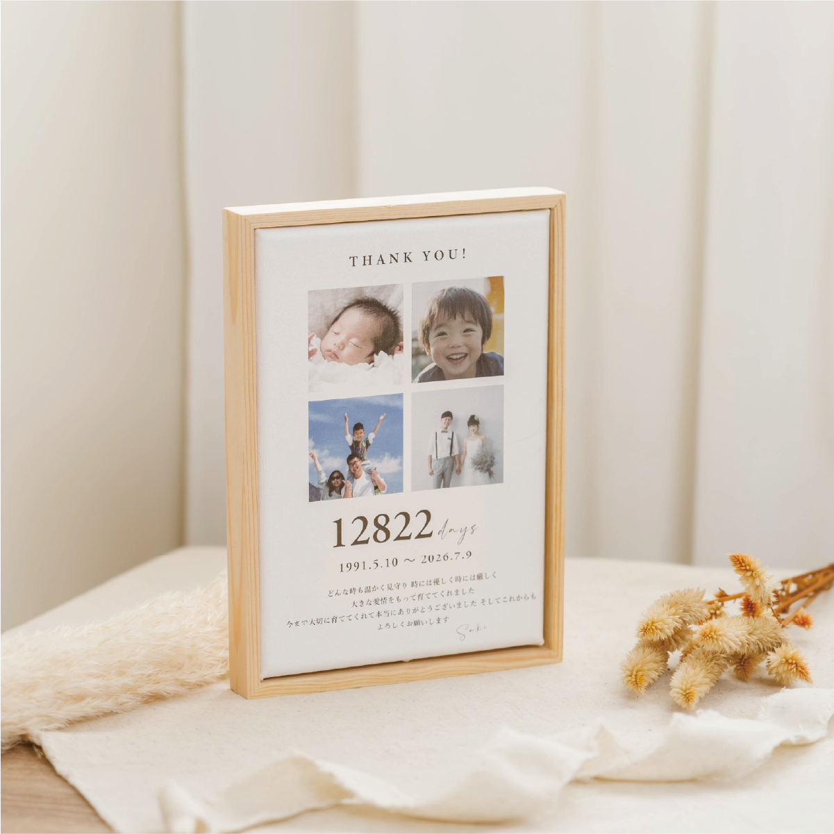 子育て感謝状《カラー写真仕様》|結婚式 両親プレゼント|木製フォトフレーム・日数入りオーダーメイド